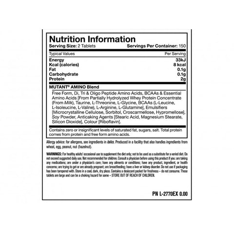 MUTANT AMINO is a high-quality concentrated source of essential and branched-chain amino acids (BCAAs) for serious mutant muscle repair and regeneration. Mutants know that amino acids are the building blocks of muscles and are essential to help create and maintain a positive nitrogen balance, which is critical for new muscle growth.