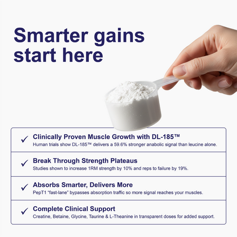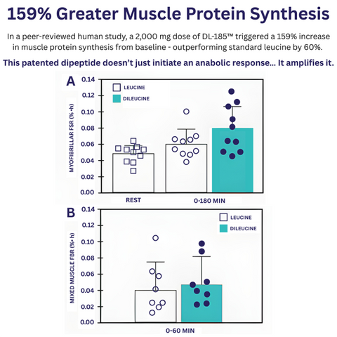 Superior Anabolic Signal.The core ingredient, DL-185™ Dileucine, is proven in human trials to be 60% more effective at triggering muscle protein synthesis than regular leucine.