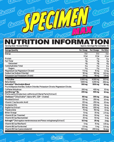 GLAXON SPECIMEN MAX - HIGH STIM PRE-WORKOUT - DATED