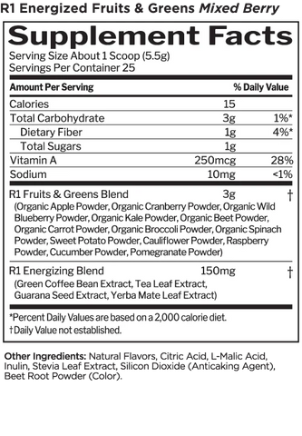 RULE 1 ENERGIZED FRUITS AND GREENS 25 SERVES - MIXED BERRY