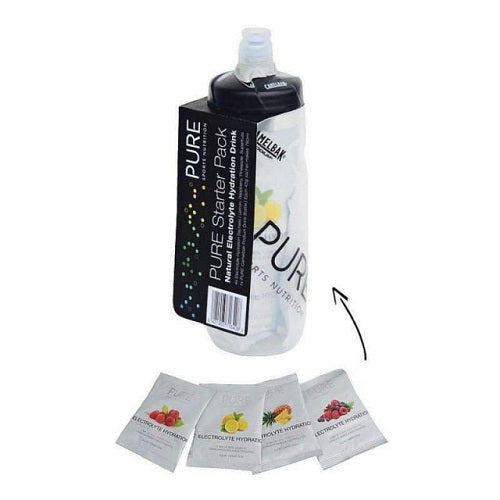 PURE Premium Starter Kit: 4 x 42g single-serve PURE Electrolyte Hydration sachets (1 of each flavour: Raspberry, Pineapple, Lemon & Superfruits...