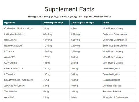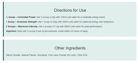 Warning: Start with ½ scoop if new to pre-workouts, then adjust as needed.