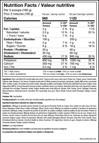 Our delicious clean mass gainer is made with 25 real food ingredients to sustain you for superior performance. Unlike basic weight gainers, every powerhouse scoop of CLEAN MASS XL is loaded with complete muscle building protein (whey, milk, fermented pea, sprouted pumpkin seed), clean carbs (like organic quinoa, brown rice, sweet potato), and healthy fats (like MCT, avocado, flax). Added veggie greens provide micronutrients, antioxidants, vitamins & minerals to help energize every movement. Full spectrum electrolytes & digestive enzymes keep you hydrated & consistent to keep stacking mass, hitting PRs and scoring goals. Gain on!