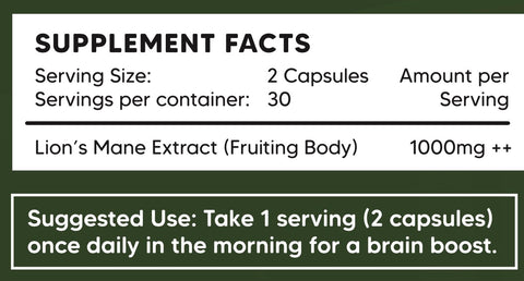 Pure Lions Mane Extract: Our capsules contain 1000mg of pure Lions Mane extract, derived from the pristine forests. This natural superfood has been revered for centuries for its remarkable cognitive-enhancing properties.