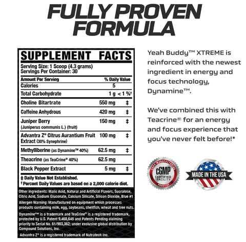 Yeah Buddy™ XTREME is reinforced with the newest ingredient in energy and focus tech-nology, Dynamine™ for an experience that you've never felt before!