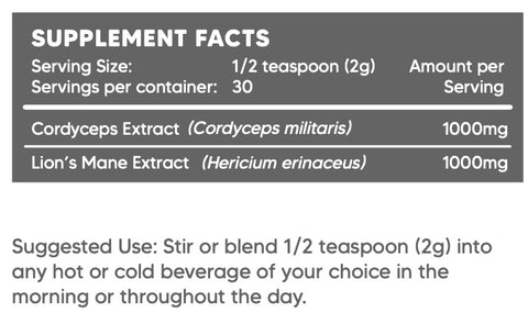 Start your day with our AM Mushroom Tonic, infused with potent Cordyceps and Lion’s Mane mushroom extract to support cognitive function and energy.