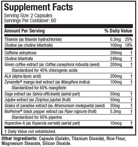 - 200mg of ALA - an antioxidant that aids in the metabolism of carbs, fats and proteins